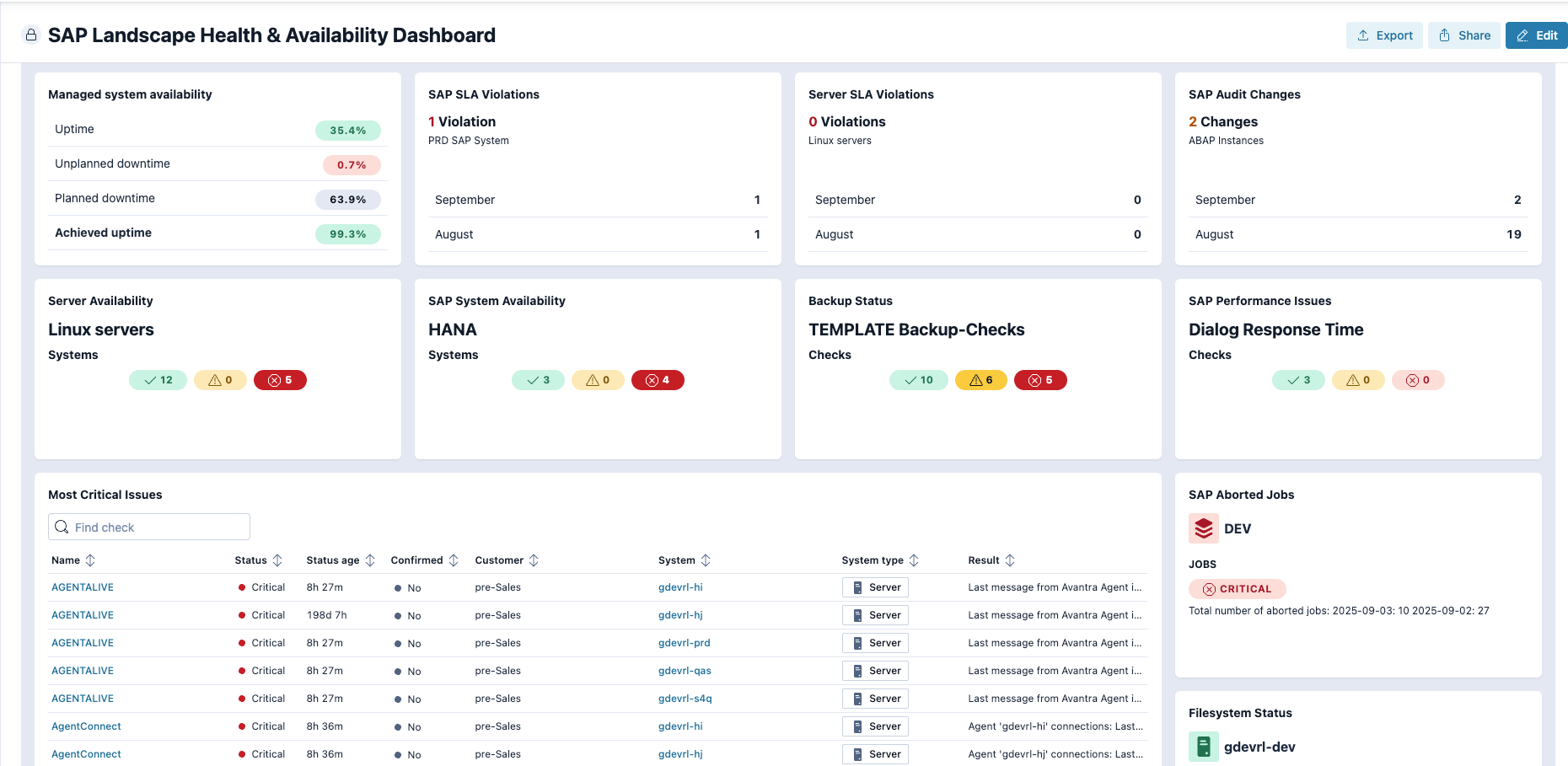Track cross landscape health and operational inefficiencies