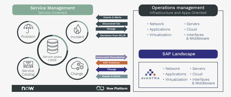 - Optimization – Avantra’s advanced automation platform combined with the governance and control of the ServiceNow platform, allows businesses to auto scale, remediate, and patch complex and hybrid (cloud and on-premise) SAP landscapes based on business needs, budgets, system performance, and available maintenance windows.